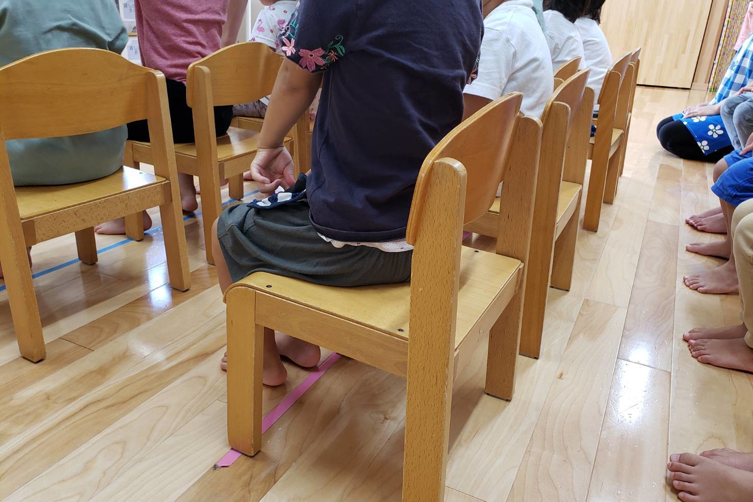 たくさん遊んだ後はゆっくり体を休めます。4・5歳児も夏の間はお昼寝します。