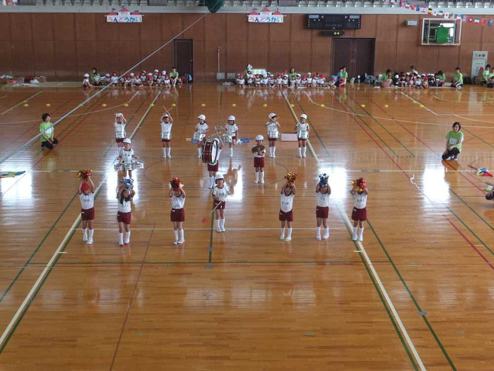 各クラスでいろんな教育・保育が展開される時間帯です。 マーチング練習はすべての楽器を体験してからパート編成に。 基本動作の練習など集中力がつきます。